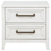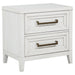 Bring fresh perspective to your bedside with a modern two-drawer nightstand. Its casual style and classic stance create a restrained look and feel, perfect for a soothing bedroom space. It features a distressed white finish over wood grain, creating subtle depth and detail. Drawers are roomy for bedside essentials, and stepped fronts add character and dimensionality. Contrasting antique brass toned bar pull complete the look, offering stylish allure in your stylish bedroom.