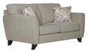 Elevate your living space with our contemporary loveseat, the epitome of modern elegance and comfort. Wrapped in a luxurious soft chenille fabric, this loveseat offers a tactile experience that’s as inviting as it is stylish. The clean lines and sleek design are perfectly complemented by the inclusion of two eye-catching geometric patterned accent pillows, adding a pop of personality to your décor. Supported by flared espresso finished wood legs, this loveseat not only exudes sophistication but also promises durability for years to come. Built for comfort, the seats are constructed of individually pocketed coils encased in foam and topped with a layer of cool gel infused memory foam for a long lasting, comfortable and supportive seat. Whether you’re entertaining guests or enjoying a quiet evening in, our contemporary loveseat provides the perfect balance of aesthetics and coziness. Redefine your interior with this statement piece that effortlessly combines form and function.