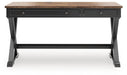 Raise the bar on modern farmhouse style with this home office desk and return. Its casual good looks are accentuated with a two-tone finish, which pairs a warm satin black base with a contrasting butcher block veneer desktop. The drop-down keyboard and two smooth-gliding drawers bring both form and function to your at-home workspace, while a cord management raceway keeps those annoying electronic connections neatly in place.