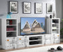 ACME Cargo Side Pier (Right), White, 22" x 16" x 49"H, 73Lbs. Anchor your entertainment space in effortless style with the Cargo entertainment set. The impressive design elements mix contemporary and industrial themes into one impressive transitional look. The TV stand and 2 side piers feature a unique fun finish with metal accents that will revitalize any space. With multiple storage compartments and open media shelves, there is plenty of space for your media components and collectibles. Materials: Metal