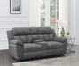 Design a living room built for comfort and relaxation around this transitional reclining sofa. Offering dual recliners operated with a side pull le...