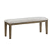 Create a warm and inviting dining space with the light brown six-piece dining set. This complete set includes a spacious rectangular dining table, four comfortable chairs, and a versatile bench, providing ample seating for family meals and gatherings. Crafted with durable oak veneer, wood, and engineered wood in a warm light brown finish, this set offers both style and lasting quality. Each chair and the bench feature a fabric-upholstered seat cushion, ensuring comfortable seating for everyone. Perfect for everyday dining and entertaining, this six-piece set is a stylish and practical addition to any home. Please note that assembly is required upon arrival. Weights & Dimensions Overall Gross Weight: 154.00 lbs Overall Net Weight: 132.00 lbs Overall Dimension: Table: 35 x 58 x 30.5H, Chair: 17.5 x 21 x 37.5H, Bench: 48 x 16 x 19.5H TABLE: 58 x35 x30.5 CHAIR: 17.5x21x37.5 BENCH: 48x16x19.5 Apron to floor: 26.5" Distance between legs from the shorter side: 31.5" Distance between legs from the longer side: 54.5" Chair Seat Width: 17.5" Chair Seat Depth: 16.5" Chair Seat Height: 19.5" Product Details Includes 1 dining room table, 4 chairs and 1 bench Made of Oak veneer, wood and engineered wood Light brown finish Fabric upholstered seat cushion Seats 6 Assembly required Fabric Type: Textured Fabric Color: Gray Fabric Content: 100% polyester Fabric Cleaning Code: Upholstery (S) Packaging Number of Boxes: 1 Overall CuFt: 16.8367 Package Dimension: 61.25 x 38 x 12.5H Piece per Carton: 1