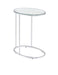 This oval side table features a sleek, modern design with a clear tempered glass top that offers both durability and elegance. Its minimalist metal frame, electroplated in chrome, provides a polished, reflective finish that enhances its contemporary aesthetic. Designed for versatility, this c-table is perfect for small spaces or as a functional accent piece next to a sofa or chair, adding a touch of style and practicality to your living room.